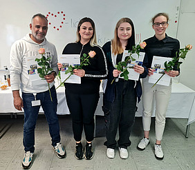 Am 28.04.2023 haben aus unserem neuen Kurs "Pflegefachasisstent*innen" nach einjähriger Ausbildung 4 Teilenehmer*innen die Ausbildung nach einem Jahr erfolgreich abgeschlossen. Wir freuen uns ganz besonders, dass alle weiterhin im Pflegedienst des Universitätsklinikums Düsseldorf tätig sein werden und wünschen einen erfolgreichen Start ins Berufsleben.