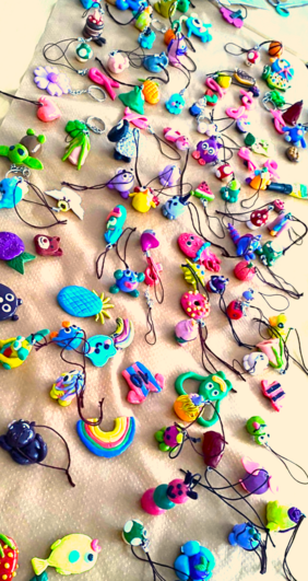 Wir haben in mehreren Doppelstunden aus Polymer Knete kleine Figuren gebastelt, die man als Anhänger oder Magneten nutzen kann. Nach dem aushärten im Backofen und Glasieren, zum haben wir noch kleine Mut machende Sprüche dazu verfasst. Diese kleinen Geschenke haben wir auf die onkologische Stationen KK04, KMT, ME7 und ME6 gebracht und an betroffene Menschen verteilt.