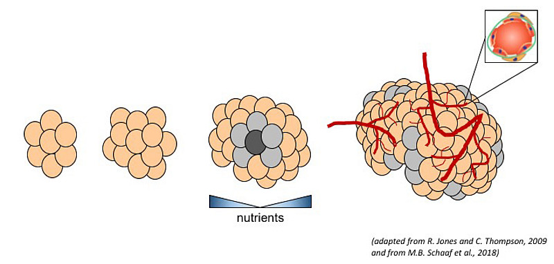 Tumors develop within very hostile microenvironments, which are characterized by various stress conditions, including nutrient deprivation, hypoxia, oxidative stress, or acidosis. In particular, tumors have limited access to nutrients as a result of defects in the tumor vasculature. While such conditions initially restrict tumor progression, certain tumor cells can adapt, leading to the emergence of more aggressive cancer cell clones. It is critical to delineate the mechanisms underlying tumor adaptation to nutrient stress. This has the power to uncover novel therapeutic targets with high selectivity, especially since normal tissues are not experiencing such a severe nutrient stress.