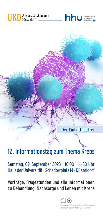 sehr gerne möchten wir Sie über das Programm der Düsseldorfer Patienten-Akademie in der Onkologie informieren. Das Universitätstumorzentrum der Uniklinik Düsseldorf startet im Jahr 2023 eine neues Angebot für Patienten/innen, Angehörige und alle Interessierte: Die Düsseldorfer Patienten-Akademie in der Onkologie. Jeweils montags von 17:00-17:45 Uhr, 1x im Monat, kostenfreie Teilnahme. Das Programm für 2023 finden Sie hier.