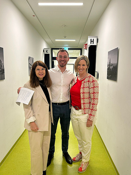 Ihre Betreuerinnen Katrin Amunts und Kimberley Lothmann freuen sich riesig über ihren Erfolg.