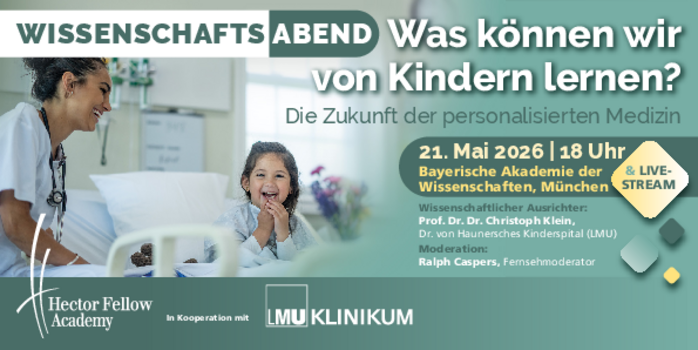 Hector Fellow Academy Wissenschaftsabend - „Was können wir von Kindern lernen? Die Zukunft der personalisierten Medizin“, 21. Mai 2026, München & Livestream
