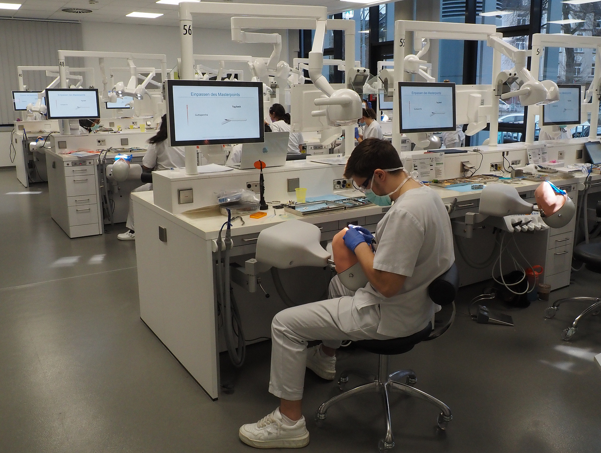 in der Studierende der Zahnmedizin in großzügigen Räumlichkeiten an Phantomen auf die klinische Tätigkeit vorbereitet werden.