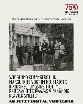 Gerne weisen wir hin auf die virtuelle Ausstellung: „Beethoven gegen den Hunger, Bruckner gegen die Kälte. Wie Benno Reifenberg und Marguerite Vogt im Hirnforschungsinstitut Neustadt im Kriegswinter 1944/45 vierhändig Klavier spielten“