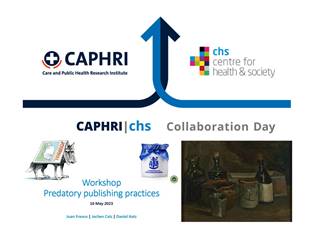 Forty-six researchers from Maastricht and Düsseldorf participated in the third CCC Day (CAPHRI-chs Collaboration), which was held as an online webinar on 16 May 2023. We shared current news from each institute and recent advances in our binational collaboration. Furthermore, we discussed the promotion of young researchers. The CCC Day also included an interactive workshop regarding predatory publishing practices.