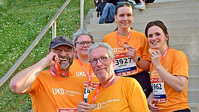 15.000 Läufer*innen aus knapp 600 Unternehmen nahmen am 21. Mai 2025 am diesjährigen B2Run-Firmenlauf in der Düsseldorfer Arena teil. Mit 550 Teilnehmenden hat das UKD zum dritten Mal in Folge die größte Gruppe gestellt. Mittendrin im Abendsonnenschein: das Team des ifam.