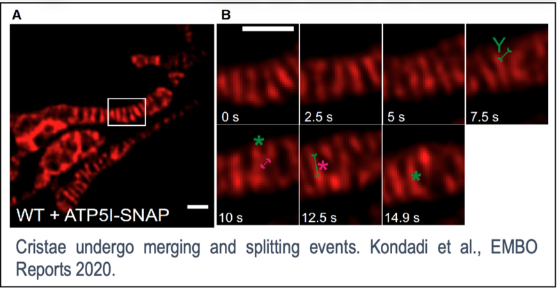 Electron microscopy and tomography studies revealed the intricate ultrastructure of mitochondria. However, because these approaches relied on fixed samples, cristae membranes were considered as static structures for over 60 years.