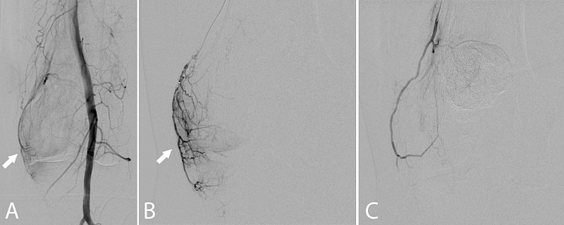 - Genicular Artery Embolization for Refractory Hemarthrosis following Total Knee Arthroplasty: Technique, Safety, Efficacy, and Patient-Reported Outcomes. Cornman-Homonoff J, Kishore SA, Waddell BS, Kesler J, Mandl LA, Westrich GH, Potter HG, Trost DW.J Vasc Interv Radiol. 2021 Aug;32(8):1128-1135. doi: 10.1016/j.jvir.2021.04.020. Epub 2021 May 5.PMID: 33961990