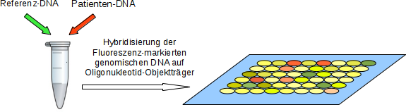 Array Comparative Genomic Hybridization (Array-CGH) ist eine molekulargenetische Technik, die verwendet wird, um genomische Aberrationen, wie zum Beispiel Deletionen, Duplikationen und komplexere chromosomale Rearrangements, zu identifizieren. Dabei werden genomische DNA-Proben des Patienten und Referenz-DNA-Proben auf einem Mikroarray hybridisiert und verglichen. Abweichungen im Signalintensitätsverhältnis zwischen den Patienten- und Referenzproben zeigen genomische Aberrationen an.