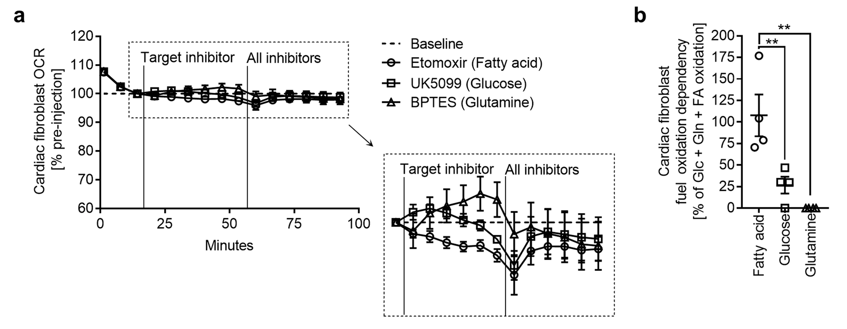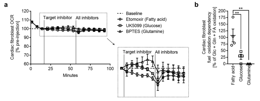 Die Charakterisierung des zellulären (Substrat-) Metabolismus kardialer Fibroblasten erfolgt mittels extrazellulärer Flussmessungen des pH-Werts und des Sauerstoffverbrauchs. Durch die Nutzung verschiedenster Inhibitoren der mitochondrialen Atmungskette und/oder des Substratfluxes innerhalb der Zelle werden Daten zur mitochondrialen Funktion und Substratnutzung erhoben.