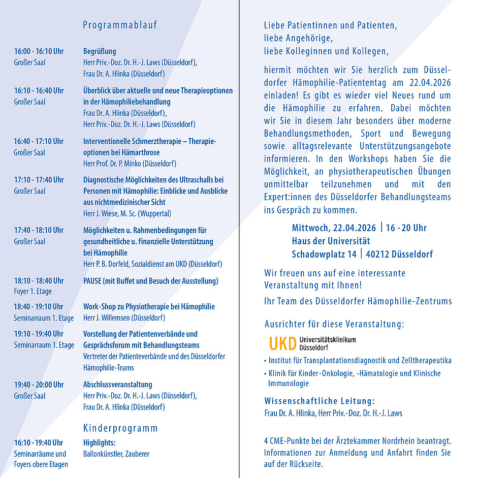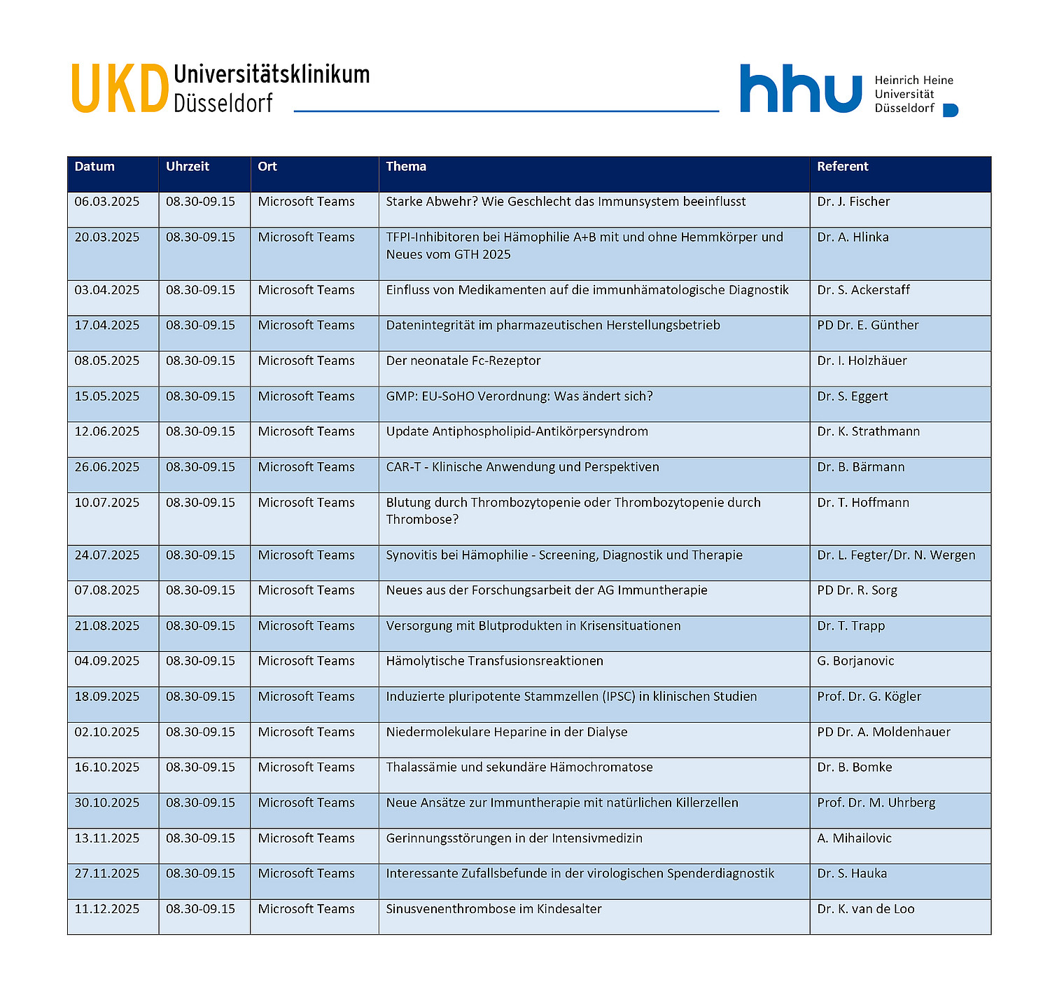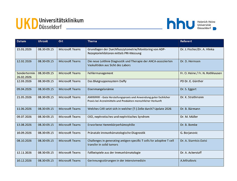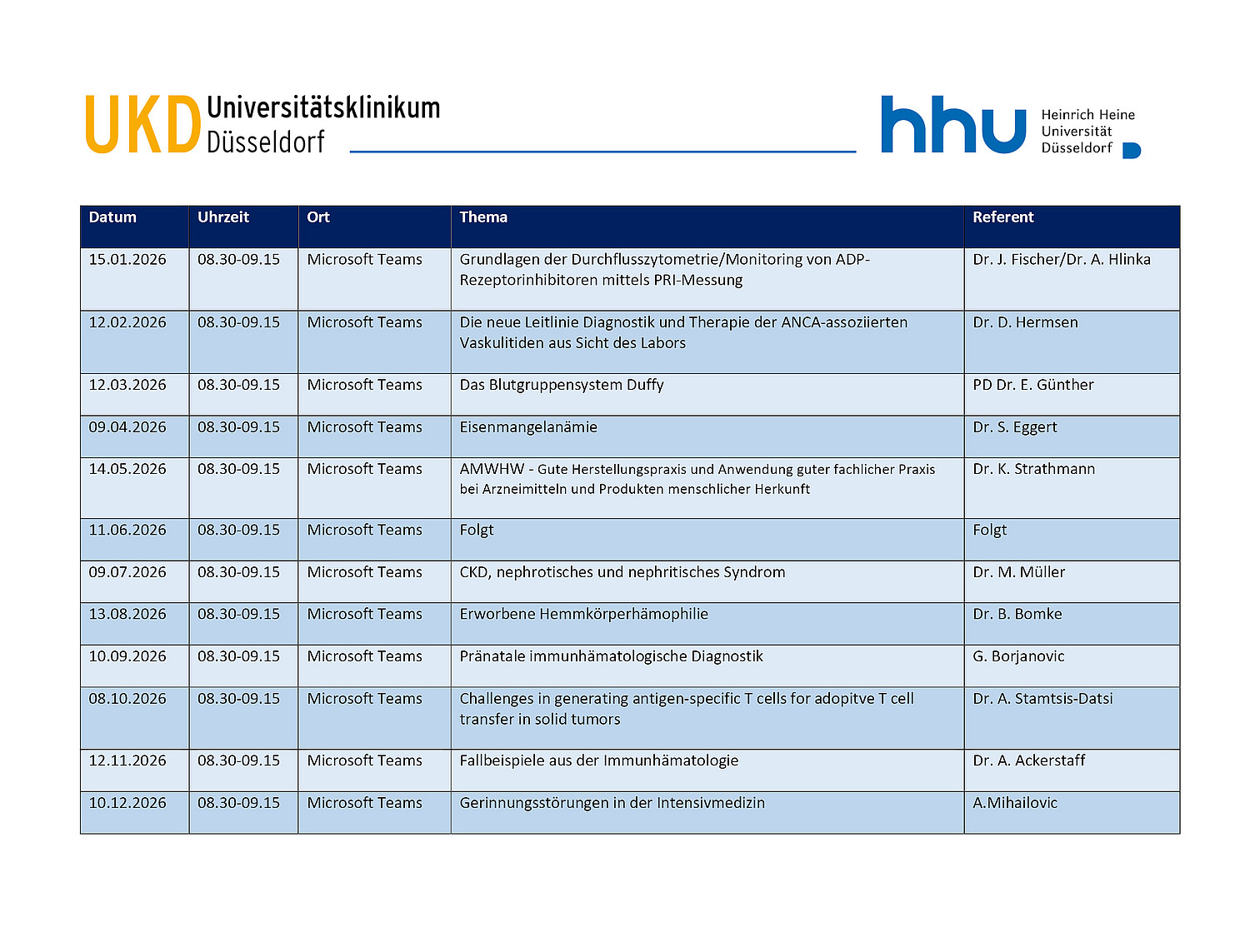 Anmeldung via Sekretariat: michaela.waelter@med.uni-duesseldorf.de oder Telefon 0211 81 17344