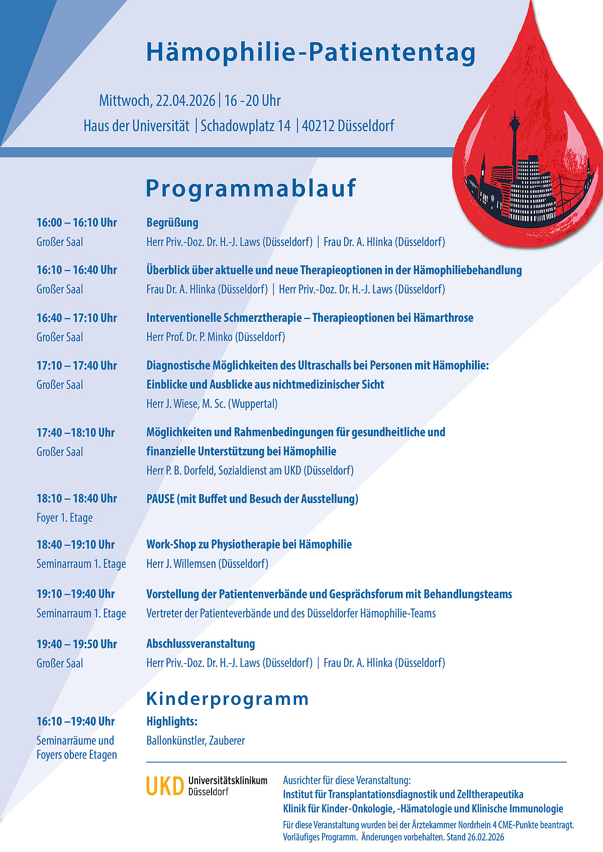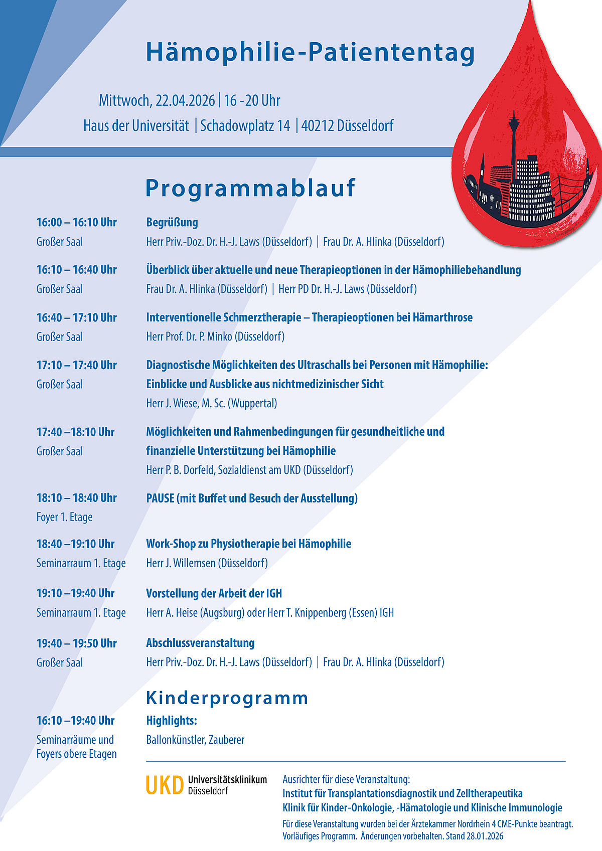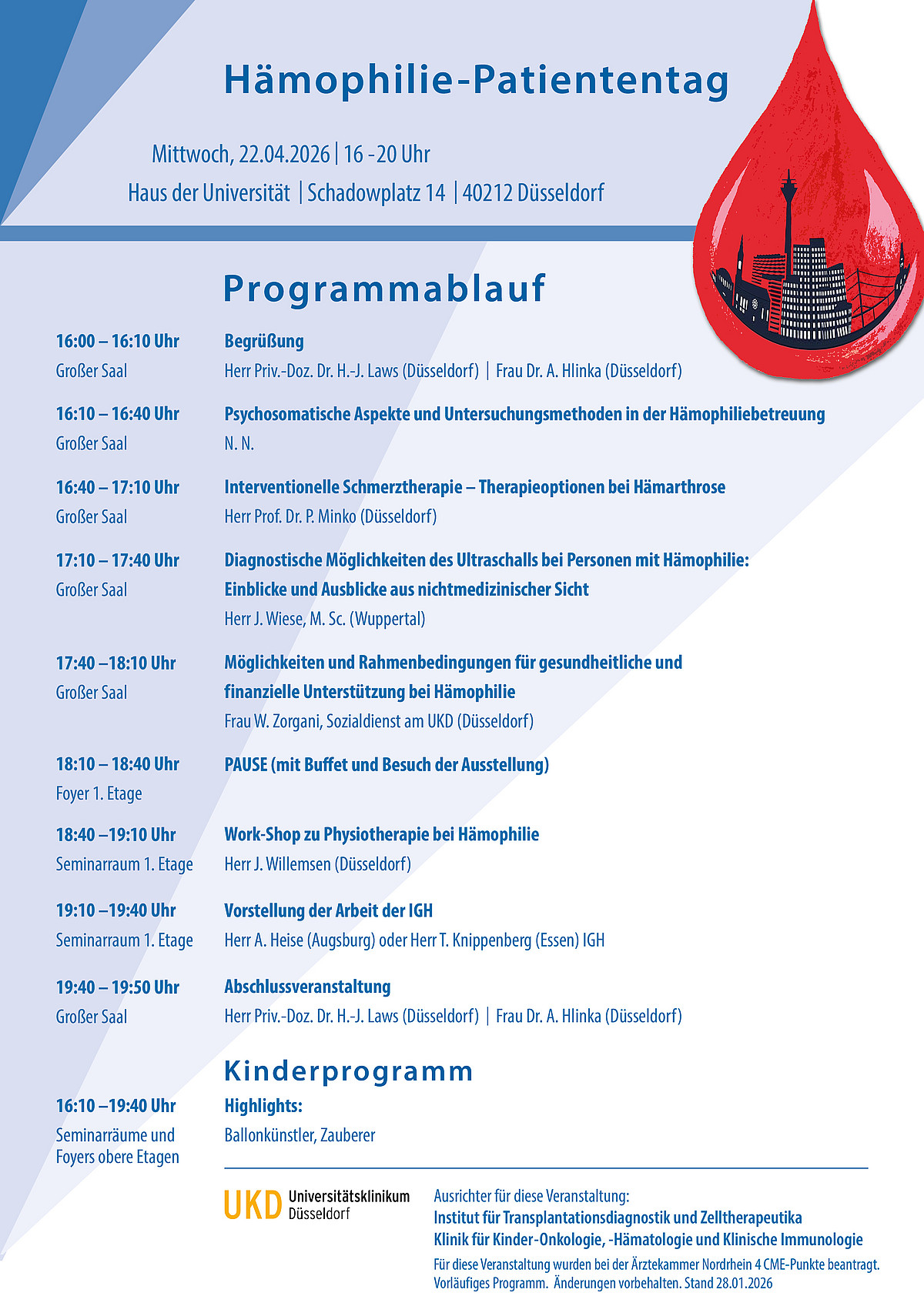 Anmeldung via Sekretariat: michaela.waelter@med.uni-duesseldorf.de oder Telefon 0211 81 17344