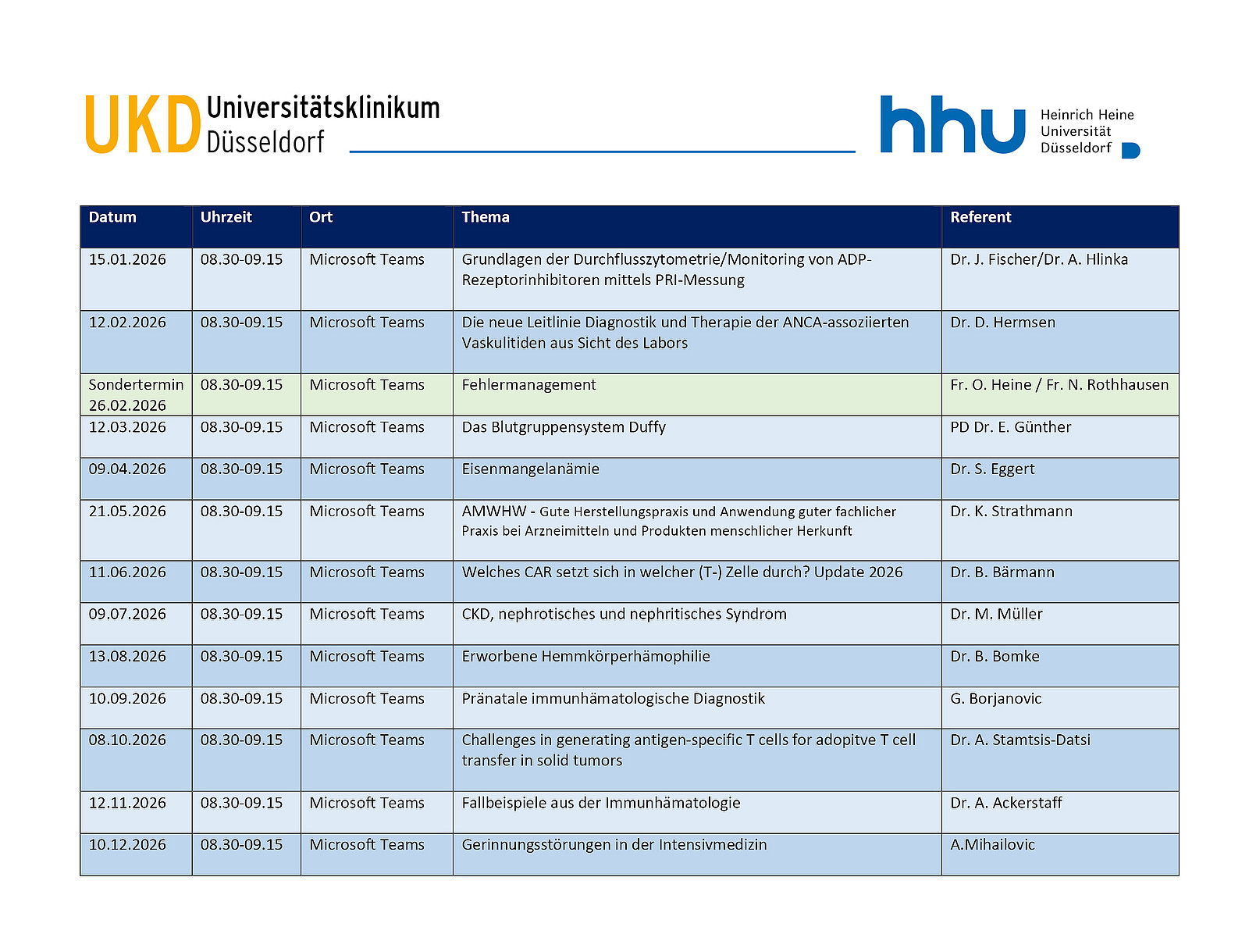 Eine Teilnahme ist sowohl für alle UKD-internen Mitarbeiter als auch für Teilnehmer von extern möglich. Wir freuen uns über alle interessierten Gäste!