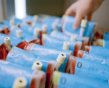 Bei schweren, ausgedehnten, gar lebensbedrohlichen Blutungen muss unverzüglich gehandelt werden. Zur Versorgung derartiger Notfälle verfügt das Institut nicht nur über die erforderliche ärztliche Kompetenz und Logistik, sondern in seinem Kernbereich mit der Transfusionszentrale auch über das komplette Arsenal an Blutkomponentenkonserven. Die Transfusionszentrale befindet sich im Gebäudekomplex des Zentrums für Operative Medizin I (Chirurgie) in unmittelbarer Nähe zu den Operationsabteilungen und der Intensivstation. Außerdem steht uns in Form eines aktivierten Faktor VII-Konzentrats (NovoSeven) ein hochwirksames Präparat zur Verfügung, das die Blutgerinnung fördert und damit die akute Blutungskomplikation zu beherrschen hilft.