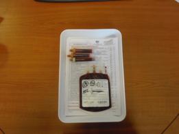 mit Entnahmebeutel, Mutterblutröhrchen und Anamnesebogen