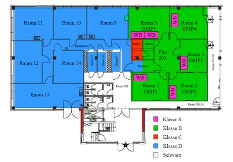 Bei der Good-Manufacturing-Practice (GMP-Anlage) handelt es sich um spezielle Reinräume, die im Wesentlichen denen moderner Chipprozessorherstellern entspricht. In den Räumlichkeiten der GMP herrscht ein Überdruck von bis zu 55 hPa über den Normalbedingungen, der durch spezielle Belüftungs- und Partikelfiltervorrichtungen erzeugt wird. Somit wird gewährleistet, dass im sogenannten Klasse-B-Bereich maximal 2900 Partikel (5μm Durchmesser) pro m³, unter der Sterilbank (Klasse A) sogar lediglich 1 Partikel pro m³ vorliegen.