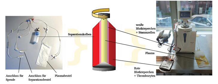 Das Nabelschnurblut wird einer Volumenreduktion unterzogen. Dadurch werden die Bestandteile des Blutes entfernt, die bei einer späteren Transplantation nicht benötigt werden. Die Volumenreduktion erfolgt in einem geschlossenen System mit Hilfe von Zellseparationsautomaten.