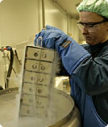 Die Langzeitlagerung der Präparate erfolgt in einem dafür vorgesehenen Raum. Die automatisierte Befüllung der Stickstofftanks und der Pegel des Stickstoffs werden hierbei kontinuierlich überwacht und gesichert.