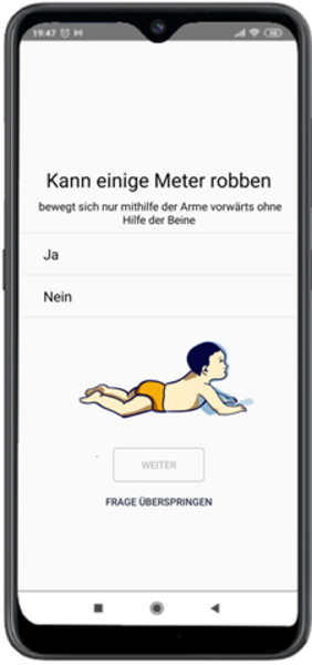 Wir möchten untersuchen, wie gut Sie als Eltern den Entwicklungsstand Ihres Kindes einschätzen können, da Eltern diejenigen sind, die Ihr Kind am besten kennen. Wir werden daher im Rahmen der Studie über eine Smartphone-App in regelmäßigen Abständen per Push-Benachrichtigung Fragen zur Entwicklung Ihres Kindes stellen. Sie müssen auf die Fragen nur mit „ja“ oder „nein, noch nicht“ antworten. Sobald eine Frage mit „ja“ beantwortet wurde, wird sie nicht mehr gestellt werden.