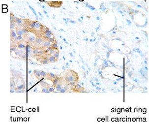 In einer interessanten Publikation wurde weltweit erstmals ein Patient mit einer multiplen endokrinen Neoplasie Typ I mit einem malignem Gastrinom beschrieben, der zugleich ein Siegelring-Karzinom des Magens entwickelte. Dabei konnte der Pathomechanismus aufgeklärt und bewiesen werden, dass Gastrin und seine Derivate die E-Cadherin-Expression herunterregulieren und demzufolge zu einer Entstehung eines Siegelring-Karzinom führen können.