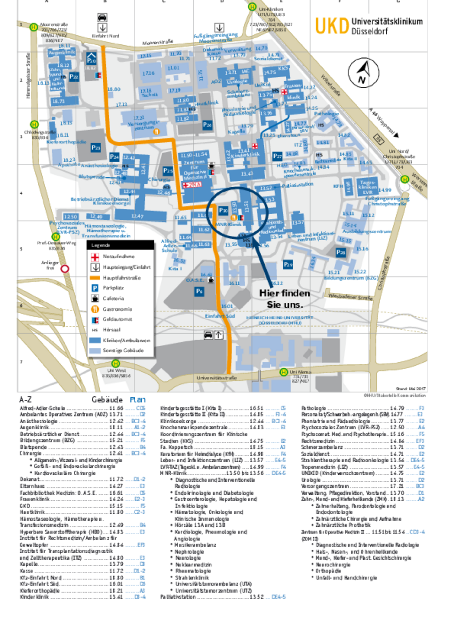 Sie finden uns in den folgenden Gebäudeabschnitten der MNR-Klinik: