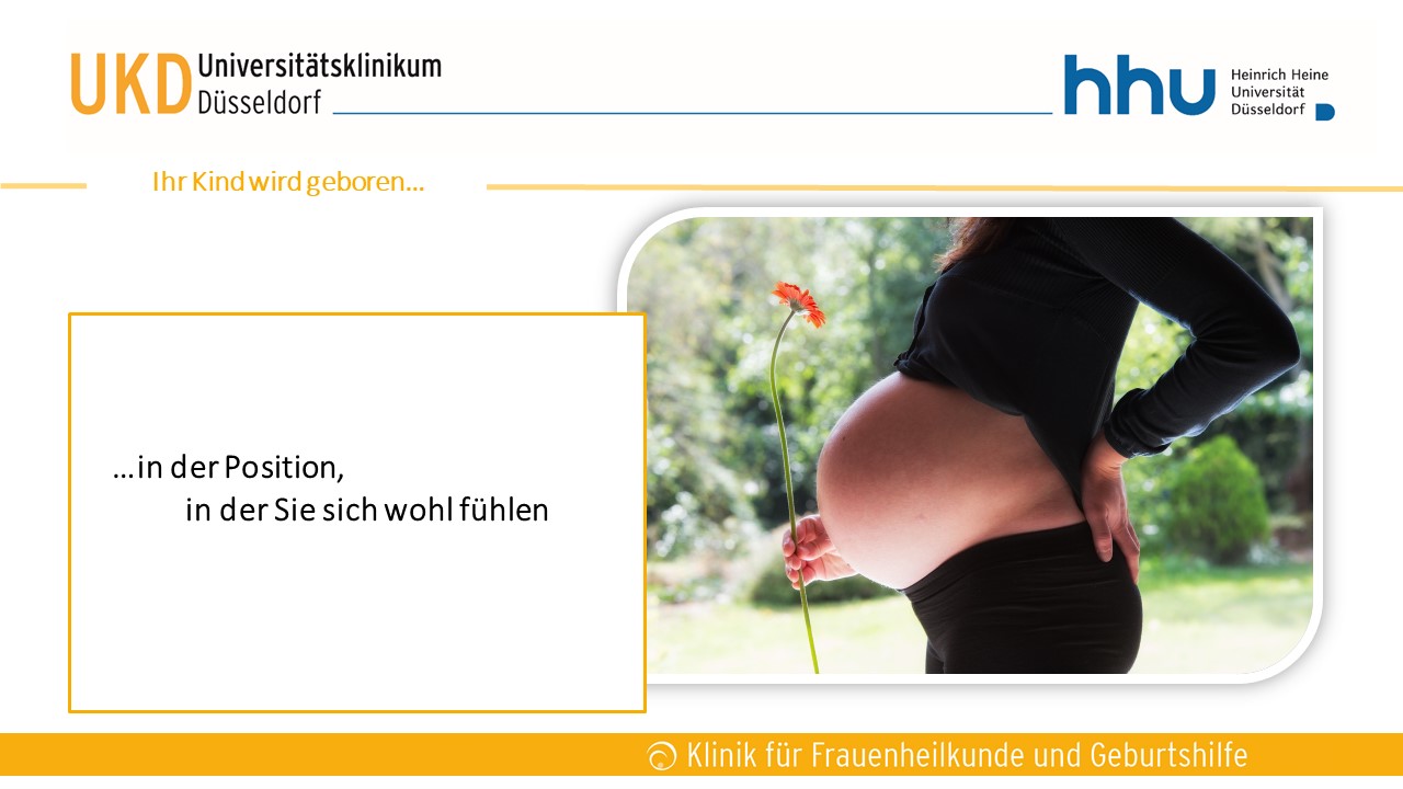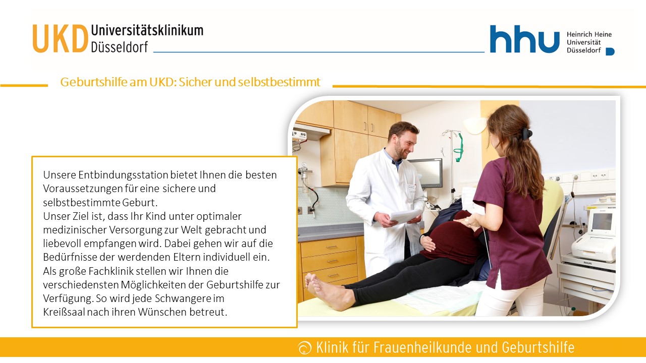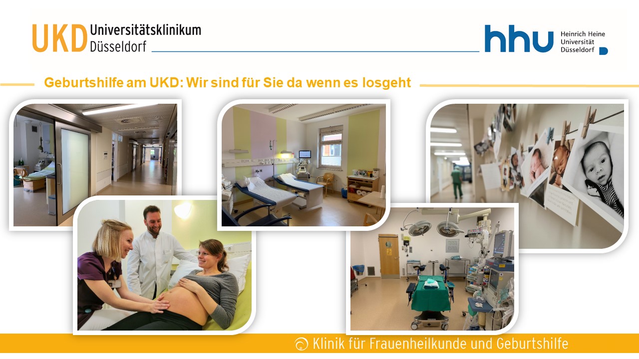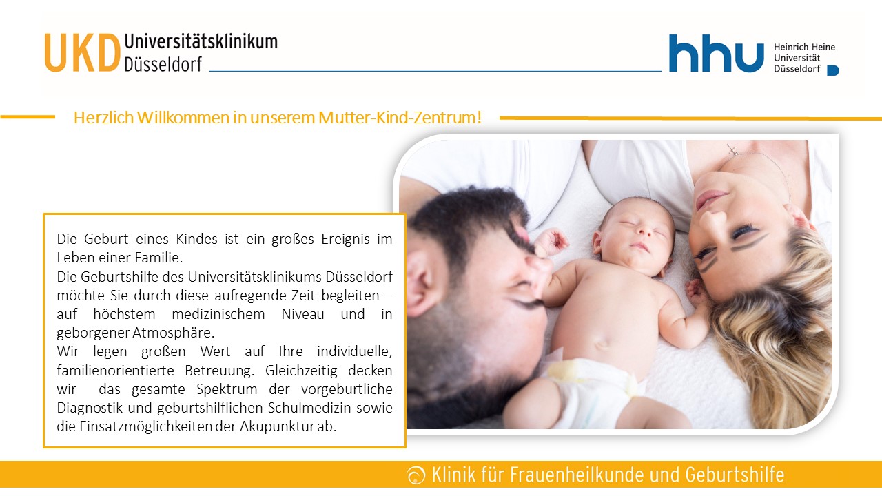 Die Geburt eines Kindes ist ein großes Ereignis im Leben einer Familie. Die Klinik für Frauenheilkunde und Geburtshilfe am Universitätsklinikum Düsseldorf möchte Sie durch diese aufregende Zeit begleiten – auf höchstem medizinischen Niveau und in geborgener Atmosphäre.