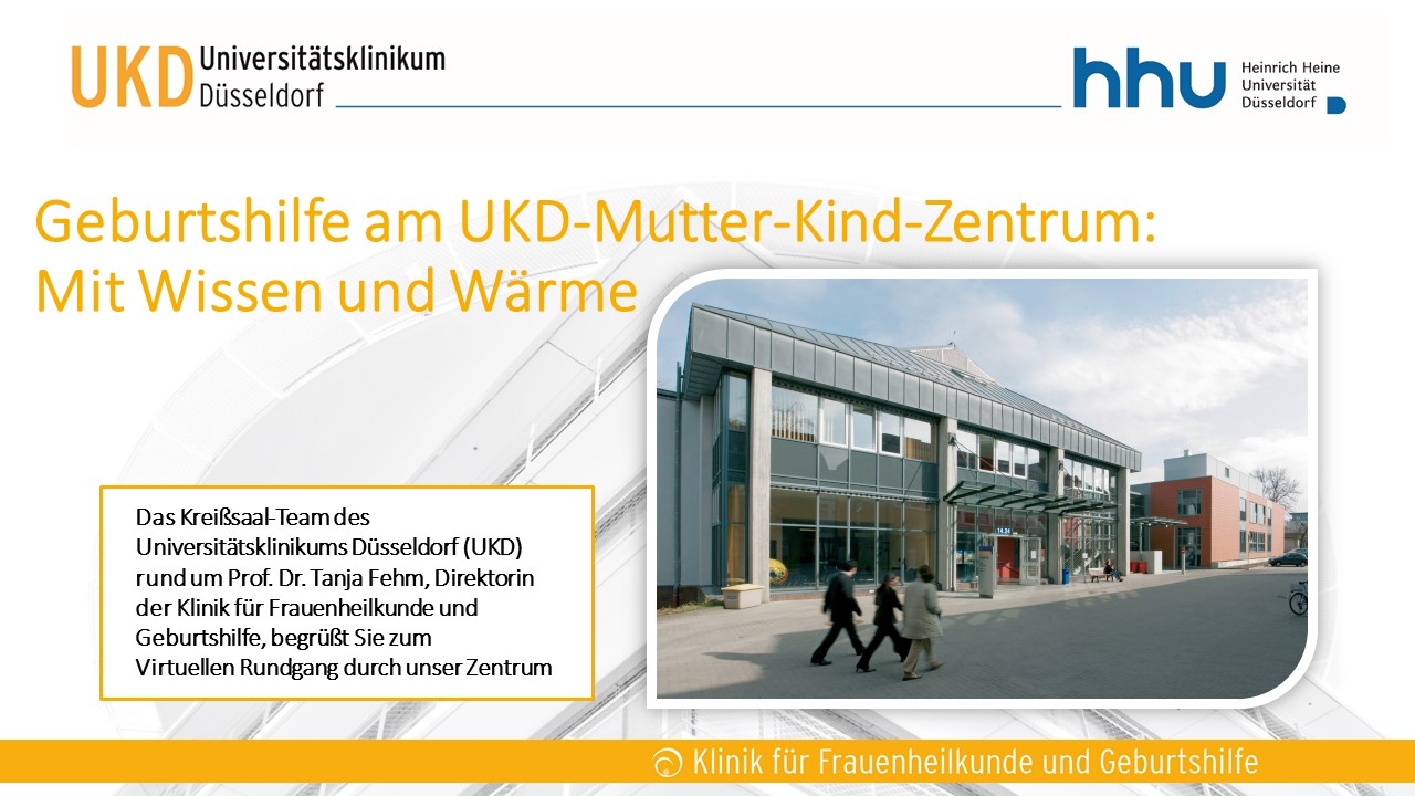 Pregnancy and birth itself mark a life changing experience in everyone’s lives. It is supposed to be a time of joy and anticipation. However, it is also often accompanied by worries and concerns. Therefore, we would like to take the opportunity to provide a platform where we aim to address frequently asked questions, such as: What can be expected? Who will be with me and what kind of support will I receive? Hereby, Professor Fehm and her staff from the University hospital for women in Duesseldorf kindly invite you to participate in our virtual tour of our facilities. The event takes place on a regular basis – every two weeks on the first and third Tuesday of the month.