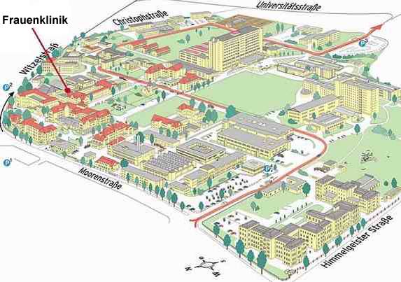 Werdende Eltern haben es meist eilig. Für sie ist vor dem Haupteingang der Frauenklinik ein „Storchenparkplatz“ reserviert. So können Sie ohne lästige Parkplatzsuche das Auto in unmittelbarer Nähe abstellen und gemeinsam in den Kreißsaal gehen. Weitere Parkmöglichkeiten befinden sich hinter dem Bettenhaus der Frauenklinik.