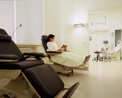 In unseremRuheraum können sich die Patientinnen nach der Eizellentnahme einige Zeit in den bequemen Ruhesesseln ausruhen. Es steht auch eine Dusche und ein WC für die Patientinnen zur Verfügung.