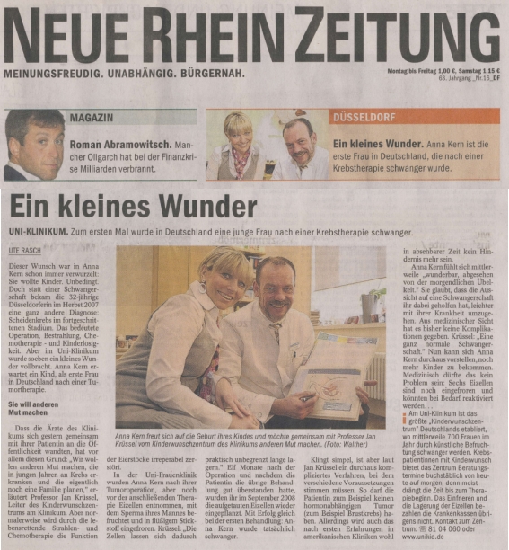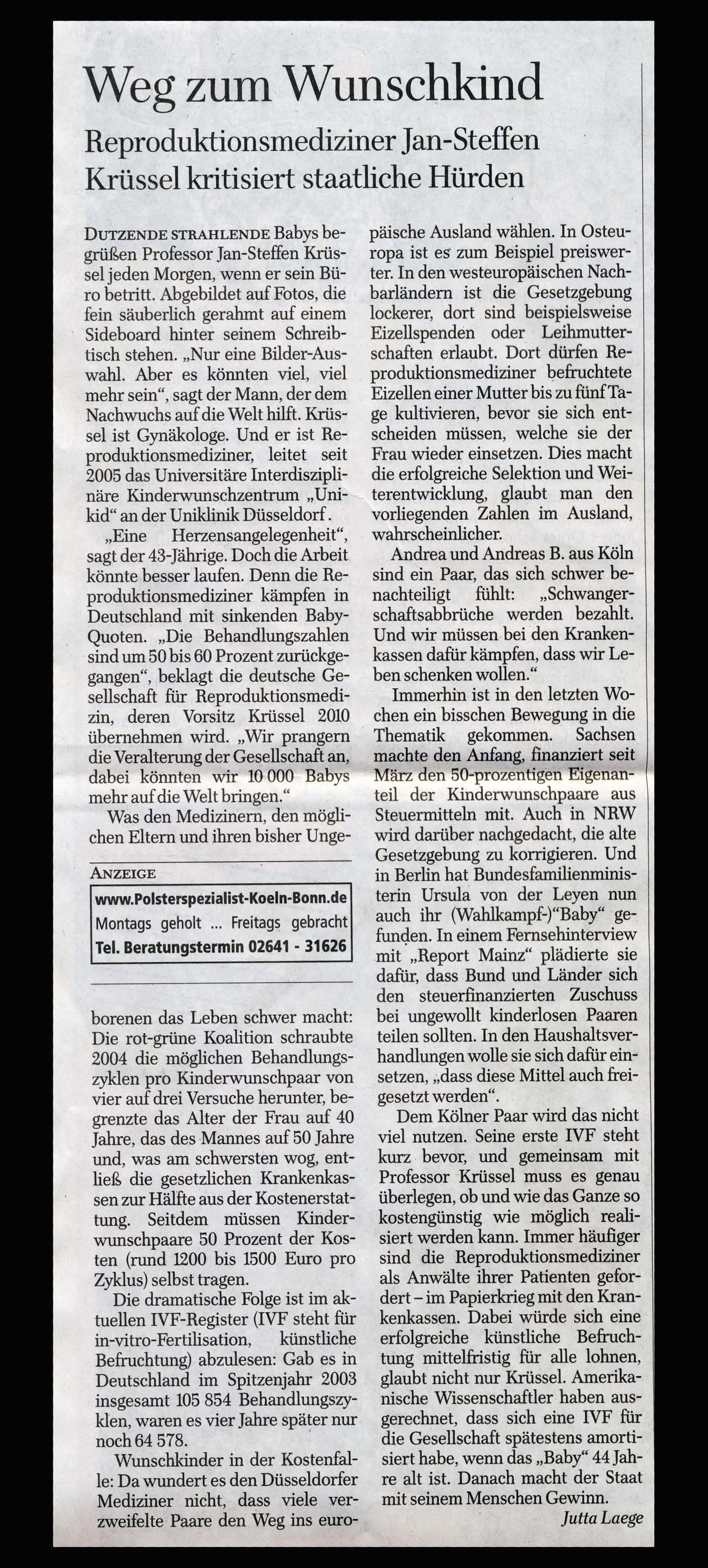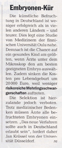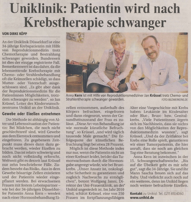 Prof. Dr. Jan-Steffen Krüssel in der Rheinischen Post zu Kosten der Kinderwunschbehandlung