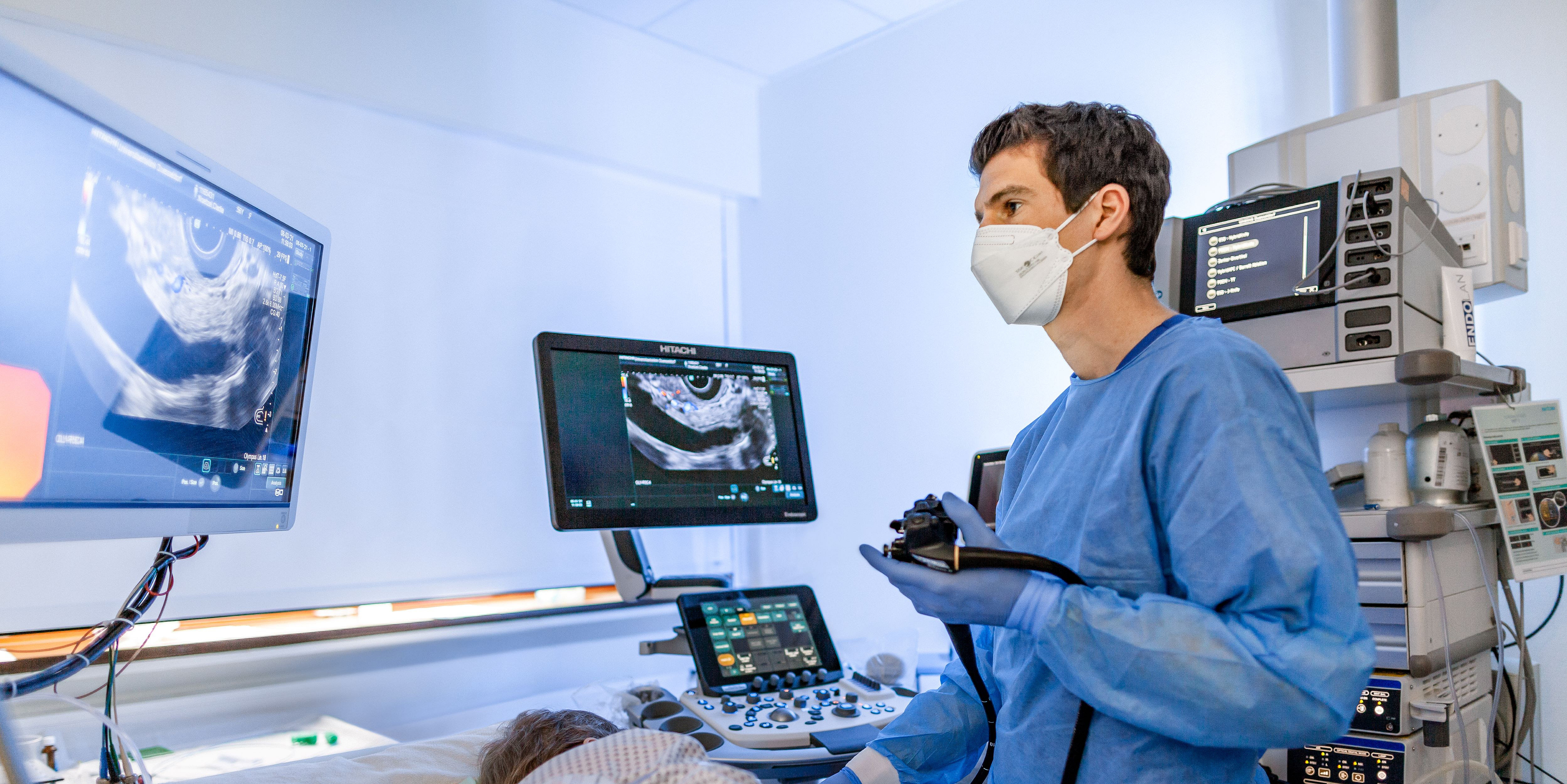 Neben der modernsten endoskopischen Diagnostik - inkl. Funktionsdiagnostik - bieten wir das gesamte Spektrum innovativer minimal-invasiver endoskopischer Therapien der Verdauungsorgane, der Gallenwege und der Bauchspeicheldrüse an, weshalb das Gebiet der interventionellen Endoskopie als Bindeglied zwischen Gastroenterologie und Chirurgie verstanden werden kann. Im Zentrum unserer Bemühungen steht die optimale Betreuung unserer Patient:innen auf allerhöchstem medizinischem Niveau. Hierfür sorgt - unter der ärztlichen Leitung von Oberarzt Dr. med. J. Kandler - ein Team aus erfahrenen Spezialist:innen und qualifiziertem Endoskopie-Assistenzpersonal.
