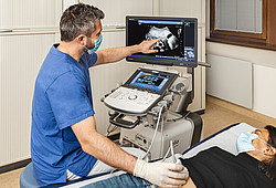 Die Sonographie (= Ultraschall) ist eines der wichtigsten bildgebenden Verfahren und wird in fast allen Bereich der modernen Medizin eingesetzt. Unter der Verwendung von Schallwellen werden Bilder der inneren Organe erzeugt, die einen wesentlichen Beitrag zur Diagnosestellung liefern. Ein großer Vorteil gegenüber radiologischen Verfahren (wie Röntgen oder Computertomographie) besteht darin, dass keine Röntgenstrahlung eingesetzt werden muss.