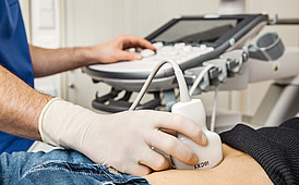 Die Abteilung für Sonographie der Klinik für Gastroenterologie, Hepatologie und Infektiologie stellt für alle Patient:innen des UKD die Durchführung von Sonographien des Bauchraums auf höchstem Niveau sicher. Dabei besteht eine besondere Expertise in der Diagnostik von diffusen Lebererkrankungen, Gefäßerkrankungen der Leber und Lebertumoren. Viele Tumoren können durch die kontrastverstärkte Sonographie (KM-Sonographie oder auch CEUS) eindeutig klassifiziert werden. Dieses Verfahren verwendet ein gut verträgliches, nicht nierenschädigendes und nicht jodhaltiges Kontrastmittel.