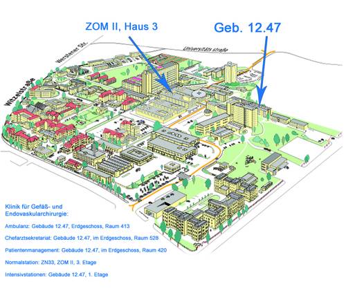 Chefarztsekretariat: Gebäude 12.47, im Erdgeschoss, Raum 528