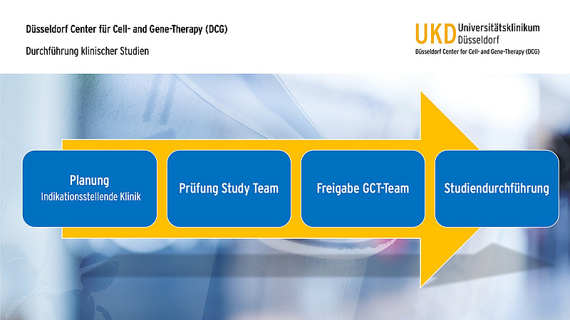 Klinische Studien sind ein zentraler Motor für Fortschritt in der Medizin – besonders im Bereich der Gen- und Zelltherapien (GCT). Sie ermöglichen es, neue Behandlungsansätze zu prüfen, bestehende Therapien zu verbessern und Patientinnen und Patienten frühzeitig Zugang zu innovativen Verfahren zu geben. Das DCG ermöglicht es moderne Zell- und Gentherapien am Universitätsklinikum Düsseldorf durchzuführen. Es dient als zentraler Ansprechpartner für die jeweilige Klinik als auch externe Kooperationspartner.