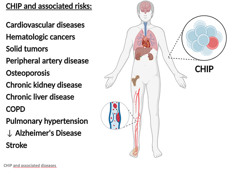 CHIP Research - Clonal hematopoiesis of indeterminate potential (CHIP) is at the crossroads of ageing, cardiovascular disease, and cancer, as it can progress to a myelodysplastic syndrome (MDS) or acute myeloid leukemia (AML). In our research we will use different sequencing techniques (eg, Whole Exome Sequencing and Whole Genome Sequencing) to identify patients with CHIP who may be prone to develop hematological malignancy and/or cardiovascular complications. This will include patients with germline mutations in the BRCA1/2 cancer predisposition genes who seem to be particularly prone to develop clonal hematopoiesis after chemotherapy and/or treatment with PARP inhibitors. In addition, individuals experiencing premature cardiovascular diseases but not presenting the typical risk factors will undergo screening for mutations associated with CHIP. Machine learning will be used to correlate the clinical course of disease with patterns of mutational and cytogenetic clonal evolution, harnessing cytomorphologic, histopathologic, and chromosomal data, as well as follow-up assessments of variant allele fraction (VAF).