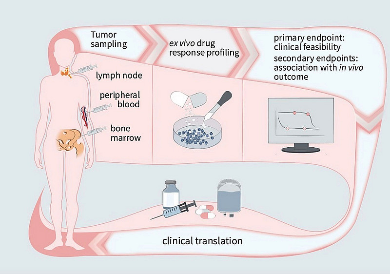 Additionally to important biological findings, ex vivo DRP can be used to predict the response of individual patients beyond known markers of therapy resistance. Based on this readout, we were able to treat patients who lacked any further standard treatment options.