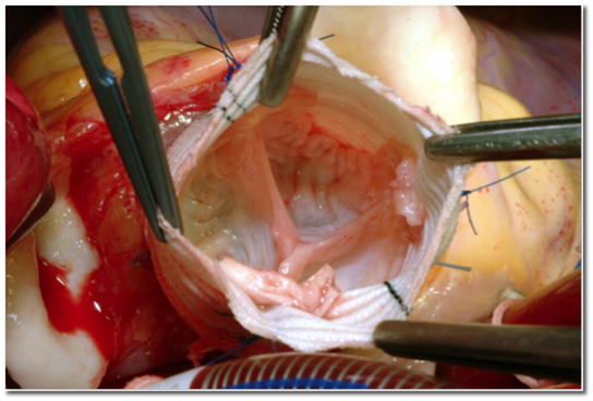 Befindet sich der Einriss der inneren Wand im Bereich der Aorta Ascendens, so wird diese zum Beispiel durch einen suprakoronaren Ersatz ausgeschaltet. Um sicher zu gehen, dass es im Bereich des Bogens nicht eventuell noch ein weiteres Entry gibt, wird eine offene Anastomse durchgeführt. Dies bedeutet, dass im Kreislaufstillstand ein Blick in den Aortenbogen geworfen und die Prothese dann im „Stillstand“ an die Aorta des Bogens angenäht wird. Stabilisierend kann ein Stent in den Bogen unter Sicht eingeführt werden. Dieser soll das „wahre“ Lumen offenhalten und für ein Remodelling sorgen.