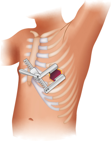 Des Weiteren kann eine Bypassoperation bei geeigneter Anatomie über eine anterolaterale Minithorakotomie im vierten bis fünften Interkostalraum, also über einen kurzen Schnitt zwischen den Rippen ohne Durchtrennung eines Knochens, auf der linken Brustkorbseite erfolgen. Hierbei wird dann in der Regel die LIMA mit dem RIVA auf der Vorderwand des Herzens anastomosiert. Bei Patienten mit passenden Voraussetzungen können über eine Minithorakotomie zusätzlich auch noch weitere Koronararterienäste mit Bypässen versorgt werden. In unserer Klinik ist für letztere Operationstechnik auch die Präparation beider Brustwandarterien etabliert , welche nur in wenigen hochspezialisierten Zentren durchgeführt wird.