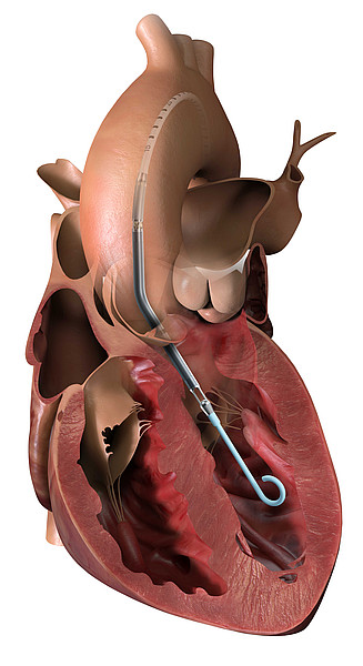 Bei einem isolierten Versagen der linken Herzkammer werden zunehmend auch kleinste Micropumpen (Impella-Pumpe) eingesetzt, die über eine Arterie in der Schulter oder in der Leiste direkt in die linke Herzkammer eingeführt werden, von wo aus Sie das Blut aktiv in die Hauptschlagader (Aorta) pumpen. Wir nutzen die Impella-System nicht nur zur isolierten Unterstützung der linken Herzkammer, sondern zunehmend auch zur schnelleren Entwöhnung des ECLS-Systems, dadurch können Komplikationen vermieden und die Patienten schneller mobilisiert werden.