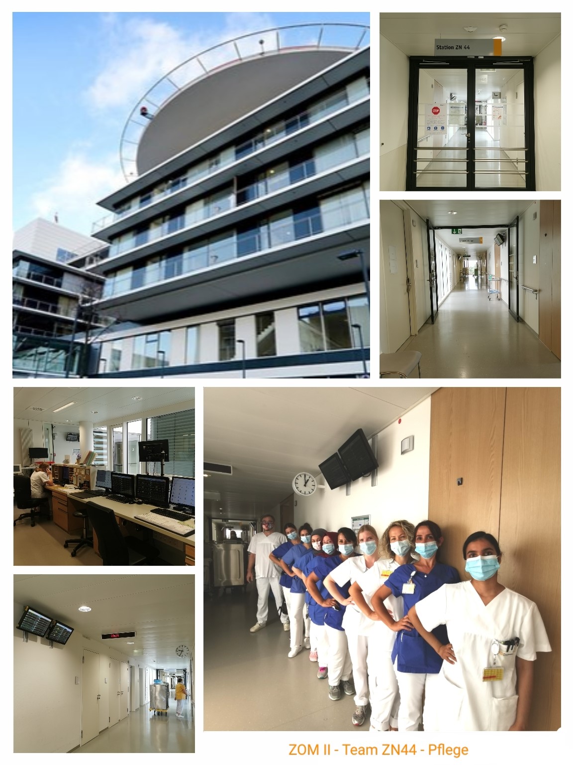 die Normalstation mit Überwachungseinheit ZN44 befindet sich im ZOM II – Haus 4 im 4. Obergeschoss und verfügt insgesamt über 32 Betten mit Monitoring Möglichkeiten. Alle Zimmer der ZN44 sind Zweibettzimmer die mit eigenem Bad, Fernseher, Telefon und Internet (gebührenpflichtig) ausgestattet.