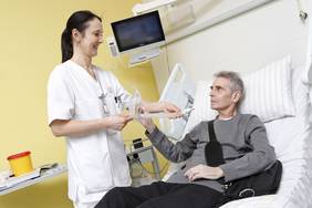 3.) Solange Drainagen (Schläuche zur Ableitung von Wundsekreten), Blasenkatheter oder Venenkatheter mit Anschluss an Infusionssysteme in Ihrem Körper liegen, bitten wir Sie zu Ihrer eigenen Sicherheit das Bett niemals eigenständig zu verlassen. Alle diese Fremdmaterialien werden in der Regel in den ersten Tagen nach der Operation entfernt.