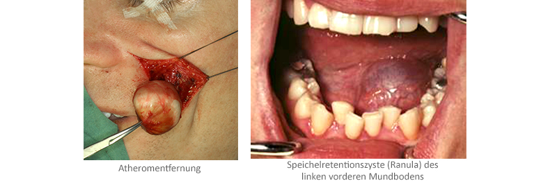 Neben Speichelretentionszysten existieren noch weitere Arten von Weichgewebszysten, welche operativ entfernt werden sollten: Atherome, Dermoid- und Epidermoidzysten sowie laterale und mediane Halszysten. Retentionszysten in der Kieferhöhle werden meist in Verbindung mit einer operativen Kieferhöhlenrevision entfernt.