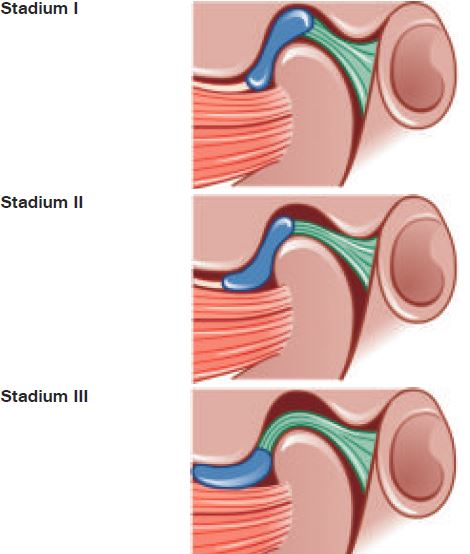 Dieses operative Verfahren wird bei der Diskusperforation eingesetzt, wenn die Veränderung relativ klein und im seitlichen Anteil des hinteren Aufhängebandes bzw. des hinteren Diskusanteiles lokalisiert ist. Nach Exzision der Perforationsränder wird der Defekt durch eine Lappenplastik von der Innenseite der Gelenkkapsel mit gut durchblutetem Gewebe vollständig gedeckt.