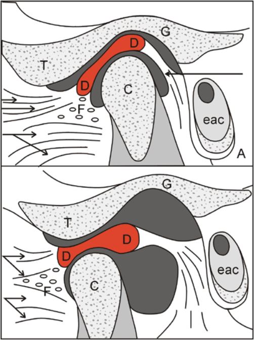 Liegt die Ursache von Kiefergelenksbeschwerden in einer Verlagerung des Diskus (Knorpelscheibe), dann kann durch operative Maßnahmen dieser wieder in seine natürliche Position zurückverlagert werden. Das Prinzip besteht in einer operativen Darstellung der Gelenkstrukturen und Kürzung des hinteren und seitlichen Aufhängebandes des Diskus artikularis in individuell notwendigem Ausmaß. Die Operationstechnik wird durch den Einsatz spezieller Instrumente und eines speziellen Nahtmaterials erleichtert.