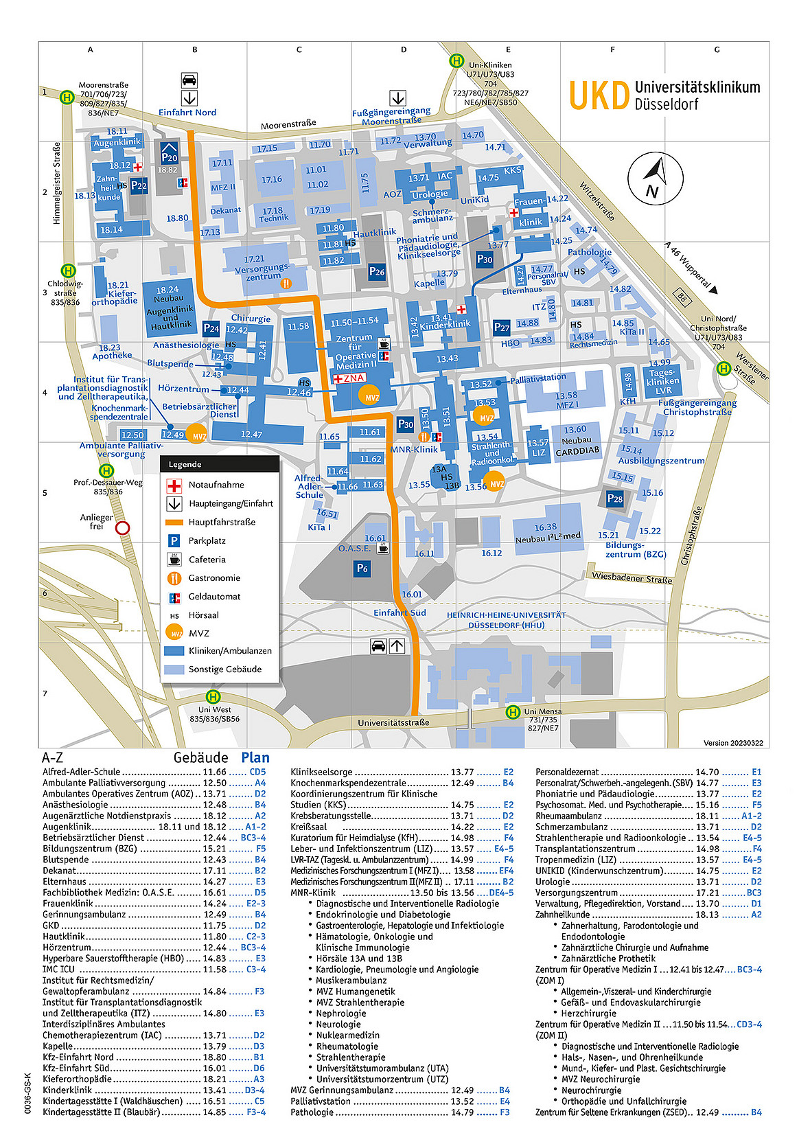 Zum Absetzen einer Person kann man bis zur Klinik vorfahren (Pförtner an der Schranke informieren)