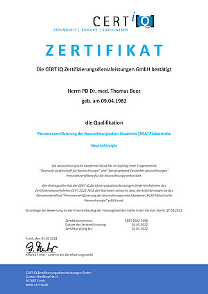- Die Behandlung übernehmen Spezialisten für Kinderneurochirurgie – Eine Spezialausbildung (u.a. durch Fellowships an internationalen Kinderzentren) erfolgt auf höchstem Niveau in kindgerechter Weise. Dies ist besonders wichtig bei Erkrankungen, welche nur im Kindesalter auftreten oder bei Kindern anders behandelt werden müssen als bei Erwachsenen. Auch abgesehen von medizinischen Fakten ist dies sehr wichtig: Kinder haben andere Bedürfnisse als Erwachsene, gerade in schwierigen Situationen. Mit Ihnen zusammen meistern wir auch das „Drumherum“ einer Behandlung in kindgerechter Weise.