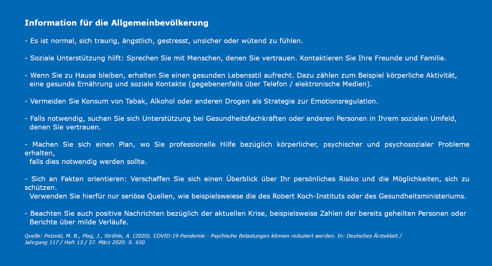 - Diagnostik und psychotherapeutische Behandlung bei psychischen/psychosomatischen Erkrankungen und bei Belastungen durch schwere Erkrankungen und Lebensereignisse