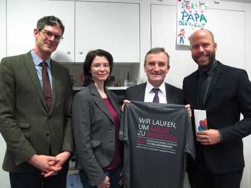 „Es hat mich tief berührt und sehr beeindruckt, wie das Team des Palliativ-Zentrums unserer Uniklinik mit Mitarbeitern aus unterschiedlichen Professionen in großartiger Weise schwerst- und unheilbar kranke Menschen und deren Angehörige umsorgt“, würdigte Oberbürgermeister Thomas Geisel die Arbeit des Interdisziplinären Zentrums für Palliativmedizin. „Der Förderverein, für den ich gerne die Schirmherrschaft übernommen habe, wird hoffentlich dazu beitragen, dass das Zentrum seine wertvolle Arbeit fortführen und vielleicht sogar ausbauen kann. Ich bedanke mich für das Trikot und werde es bestimmt bei einem meiner nächsten Läufe tragen.“