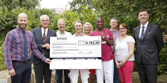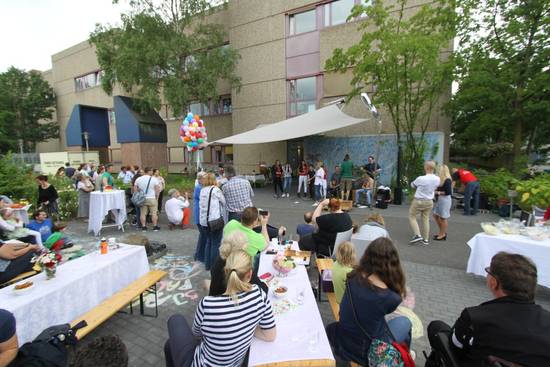 Am 19. August 2017 feierten wir mit vielen Besuchern unseren Tag der offenen Tür. Dabei konnten wir unseren neuen Stationsgarten im Innenhof vorstellen. Die fröhlichen Besucher und die Live-Musik der Rhein-Fanfaren sowie der Gruppe „Acoustic Shiver“ verwandelten den Tag der offenen Tür in ein Sommerfest. Bei dieser Gelegenheit übereichten uns "De Rhingschiffer" einen Scheck über 1000 Euro aus dem Erlös des zu unseren Gunsten veranstalteten Benefizkonzertes - herzlichen Dank! Ein ausführlicher Bericht kann in der Internetzeitung report-D nachgelesen werden.